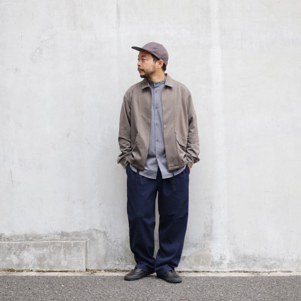 千鳥格子ダブルジャージーを用いたシャツジャケット。リサイクルポリエステルにコットンをブレンドしているのでクラシックな柄もモダンでスッキリと見えます。更に裏面をメッシュ構造にすることで、肌触りも軽やかに。コーチジャケットのエッセンスをシャツと融合させているので、裾のヘリンボンテープを締めてシルエット変化を楽しむこともでできます。ポケットフラップは両端を縫い付けているのでペラペラとめくれることもなく、物も落ちにくい仕様。柄の生地を邪魔しないよう目立たないリング状のドットボタンを使用しています。