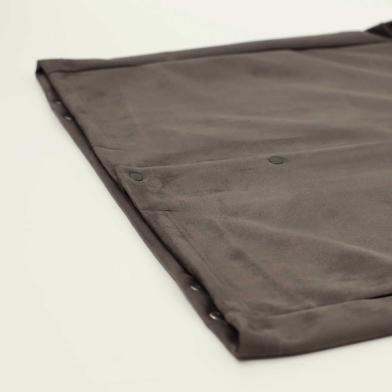 リサイクルポリエステル原料のダンボールスエードを用いたスナップボタン仕様のカーディガン。数シーズン定番アイテムとして展開しているデザインを今季はスエード調のダンボールニットにて製作。レザーの様な見え方はコーディネートのアクセントになりながらも、メンテナンスも気にする必要がなく取り扱いが楽。裏面は表側と違って起毛せずにツルッとしているので袖入れの滑りも良く、ポリウレタン配合により伸縮性に優れているので着心地は抜群です。カフスや裾のドットボタンを閉めれば丸みが出るので、シルエット変化を楽しむ事ができます。ウエスト部分にはシームポケット有り。