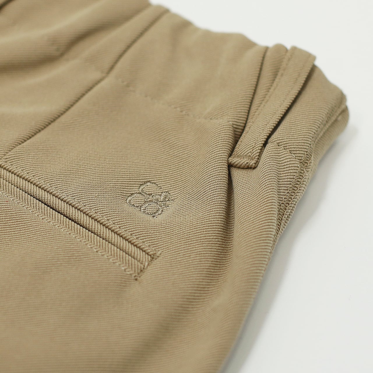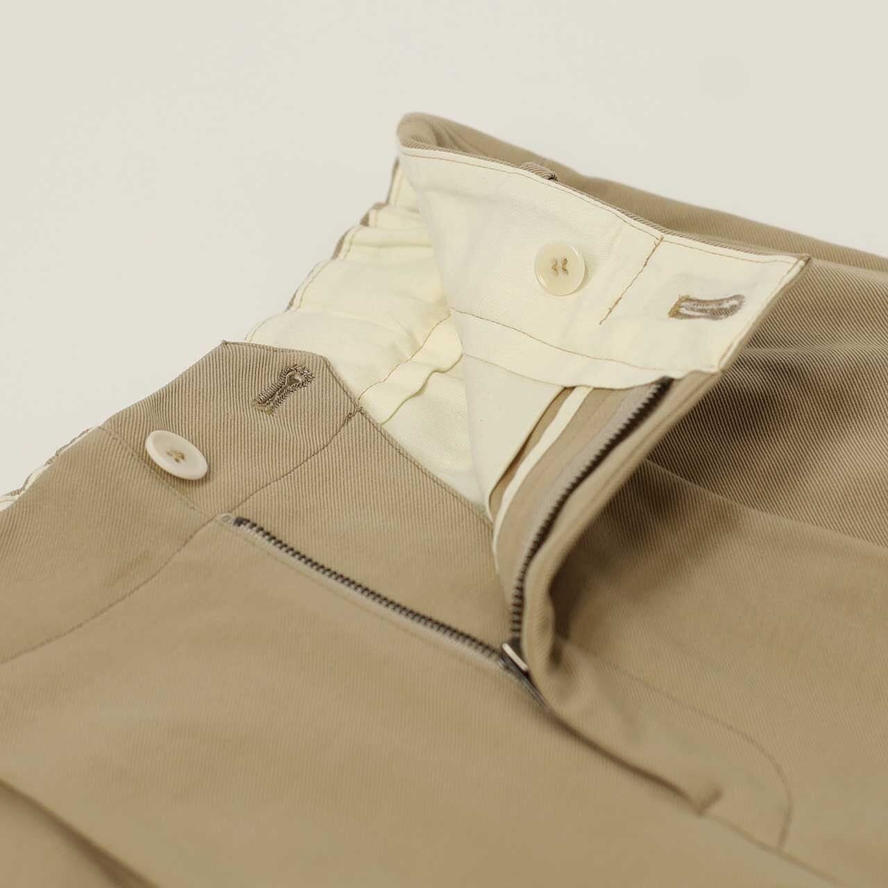コットンにポリエステルをブレンドしたオリジナルのハイゲージダブルニット素材を用いたストレートシルエットのパンツ。いわゆるチノクロスと呼ばれるオーセンティックな生地を編み素材で再現することにより、軽量でシワになりにくく動き易い特性を持った新たな”ニットチノ”を開発しました。スーピマ混60/-と東レ(株)のPBT繊維、サモーラ、を交編し、番手適合ゲージ限界までハイゲージで編み立てました。2タックデザインで腰回りから全体的にゆとりのあるワイドシルエット。前ポケットは切り替えではなく片玉縁ポケット仕様、後ポケットは両玉縁仕様で左側のみ三角フラップ付き。ベルトはクラシックな裁ち出し仕様。裾のドローコードでシルエット変化を楽しめます。脇にはカットソー専用ミシンの象徴である飾り二本針のステッチを施しています。後ろベルトのみにエラスティックバンドを使用したバックイージー仕様。後ろポケット右側に刺繍有り。