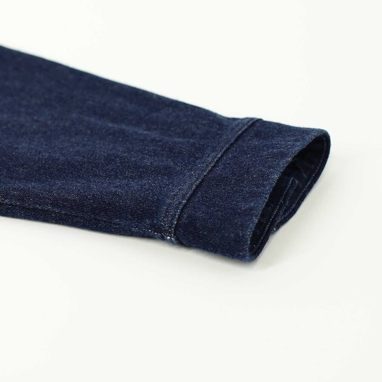 独自のストレッチインレイ素材を用いたトラッカージャケット。糸の表面だけが染まり芯部分は白いまま残るロープ染色された糸を使用し、深みのある色に仕上げたニットデニム素材。ハイゲージで編み立てることで、ムラ感が強くハリのあるシャープな表情に仕上げており、indigoカラーに関しては着込んでいくことで自然に色落ちし、味わい深い表情に経年変化していきます。編み素材ならではの柔らかい肌当たりと伸縮性を持ち、優れた着心地を実現。オーセンティックな形をベースに、前ヨークをなくしポケットも最小限に削ぎ落とし、軽い印象に仕上げています。アウター使用は勿論のこと、シャツ感覚で気軽に羽織れるアイテムとして重宝します。
