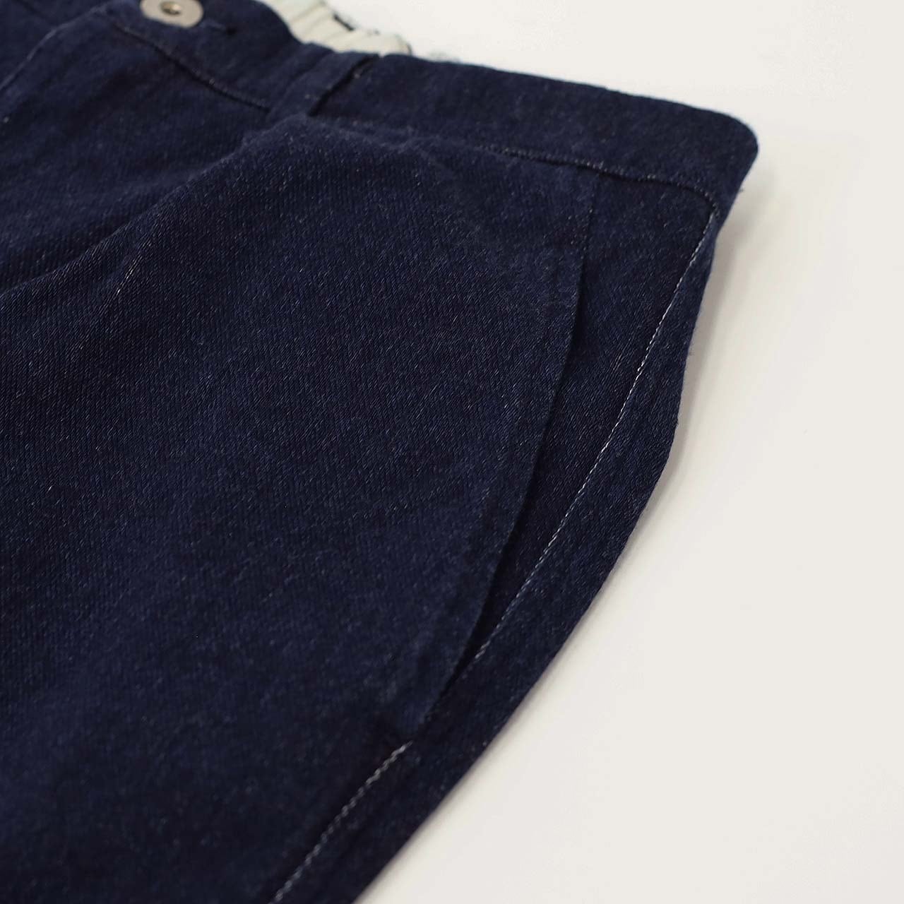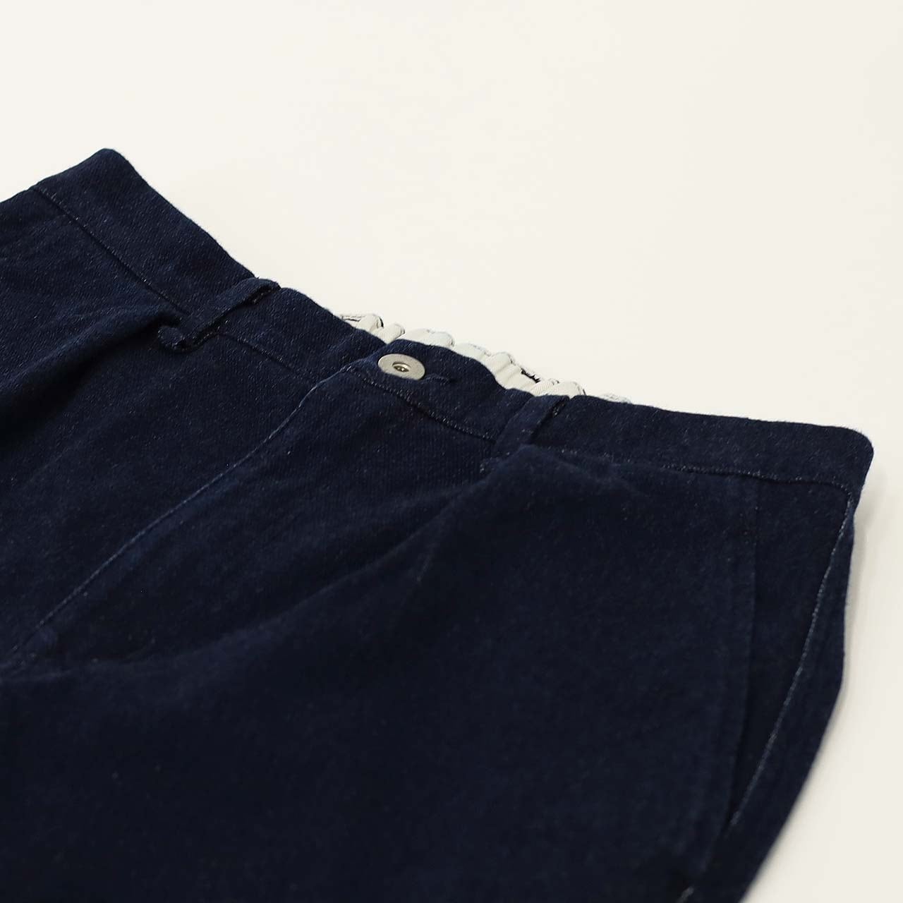 CURLY&Co./KNIT DENIM 1 TUCK EZ TAPERED SLACKS -INDIGO-