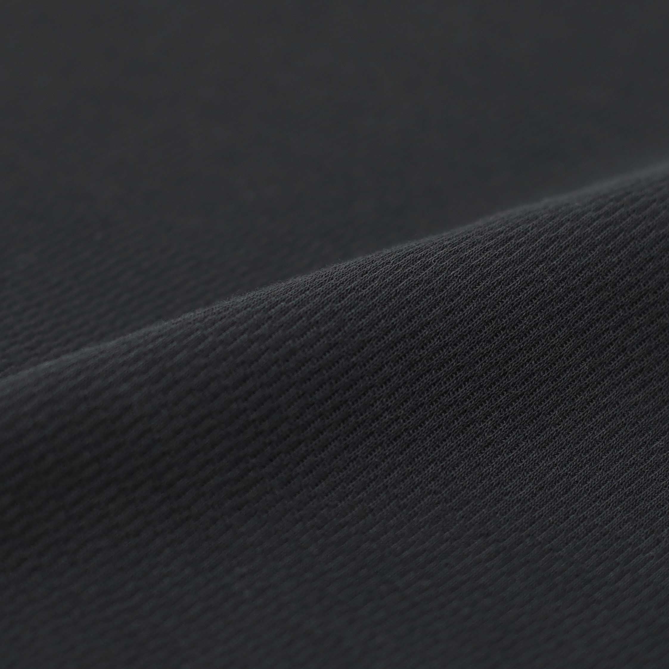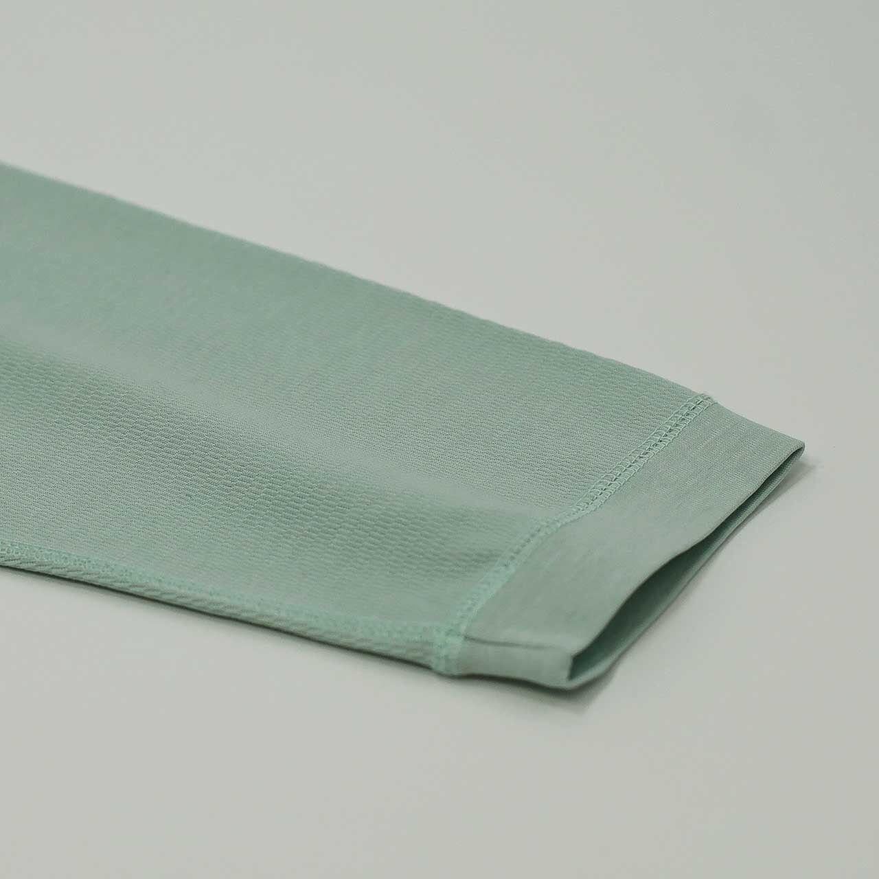 ハニカム組織で編まれたジャージー素材を用いたシンプルなプルオーバー。いわゆるサーマルと呼ばれるベーシックアイテムですが、コンパクトヤーンという特殊な紡績技術を使用して作られる糸を用いる事で、通常よりも毛羽立ちも少なく、糸の太さも均一なため自然な光沢感もあり、カジュアル過ぎない仕上がりになっています。裾始末は通常オーバーロックでラフにされがちですが、フライスのバインダー仕立てにしているので1枚での着用もお薦めです。ロンT以上スウェット未満的なアイテムです。