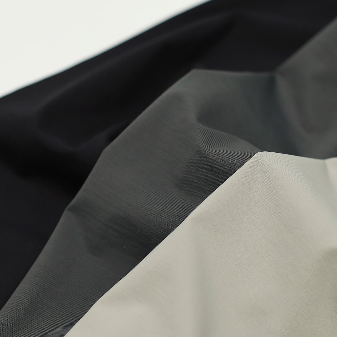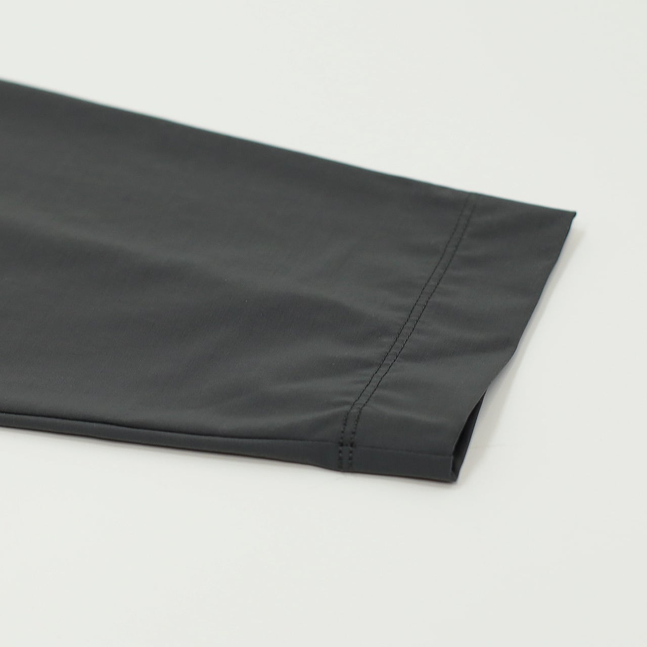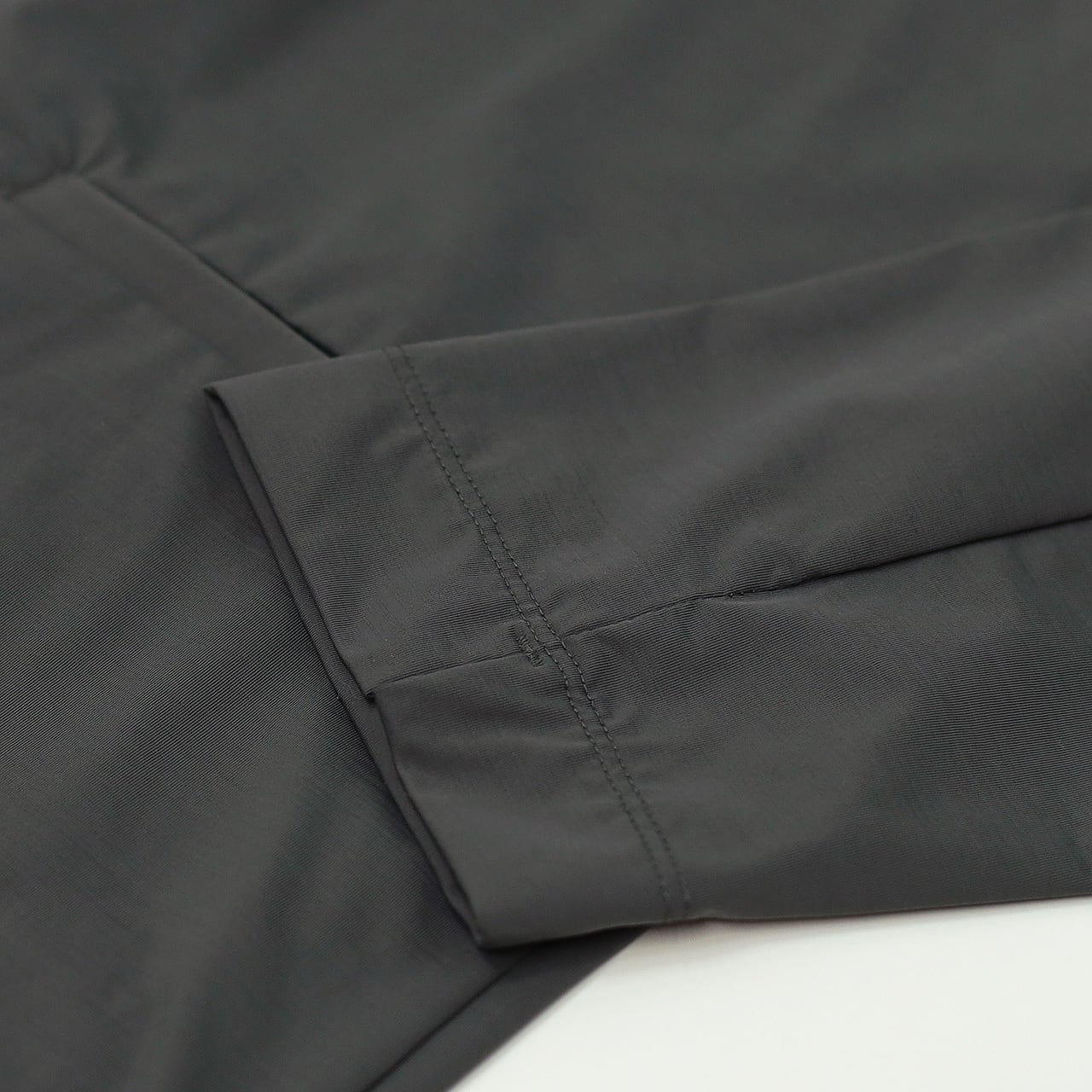 ストレッチナイロントリコット素材を用いたシャツジャケット。32ゲージの高密度で編み上げ、ポリウレタンを高含有率にてブレンドしたため、50%を超えるストレッチを持ちながらもキックバックにも長けています。また、シワにもなりにくく接触冷感機能もあるので寒暖差のある環境でコンパクトにまとめてカバンに入れて頂くこともできます。デザインはシャツとジャケットの要素をハイブリッドしているのでカーディガン感覚で軽く羽織ることができます。