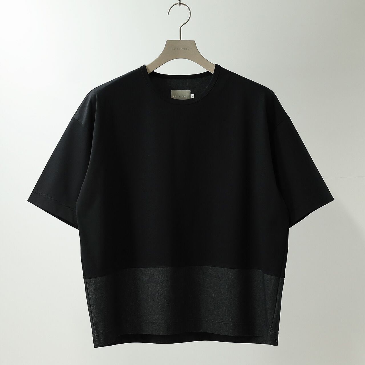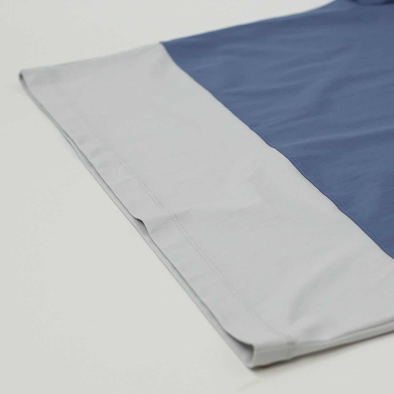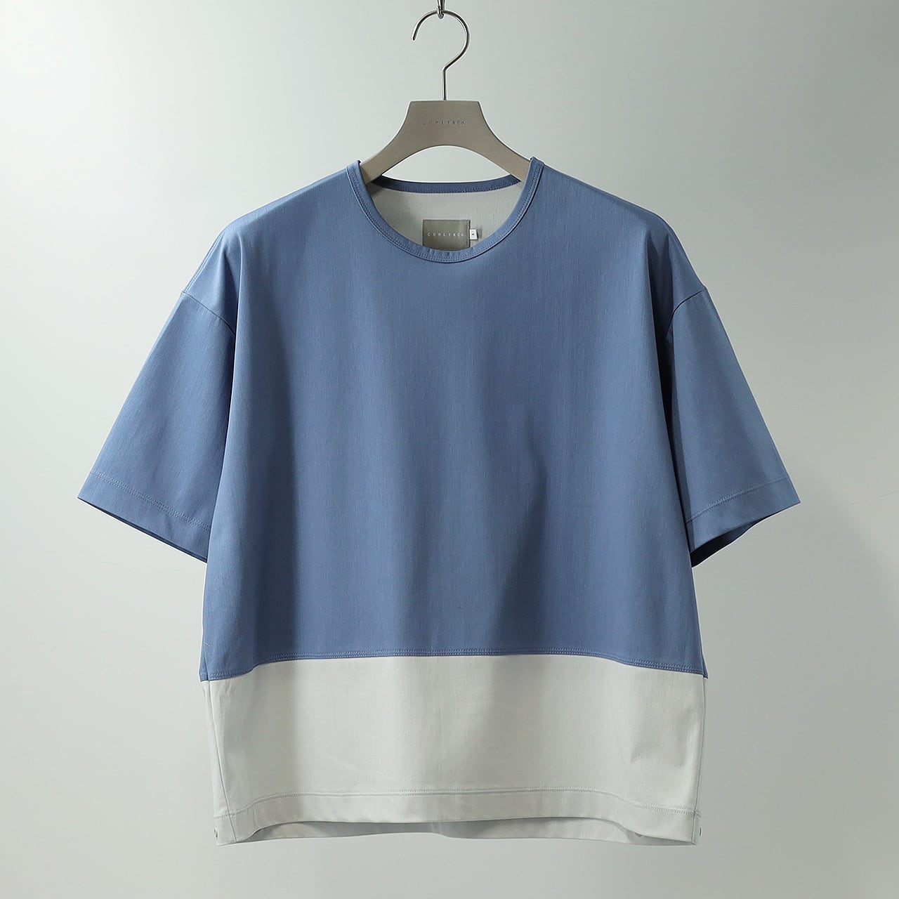 コットンにポリエステルをブレンドしたトリコット素材を用いたバイカラーTシャツ。