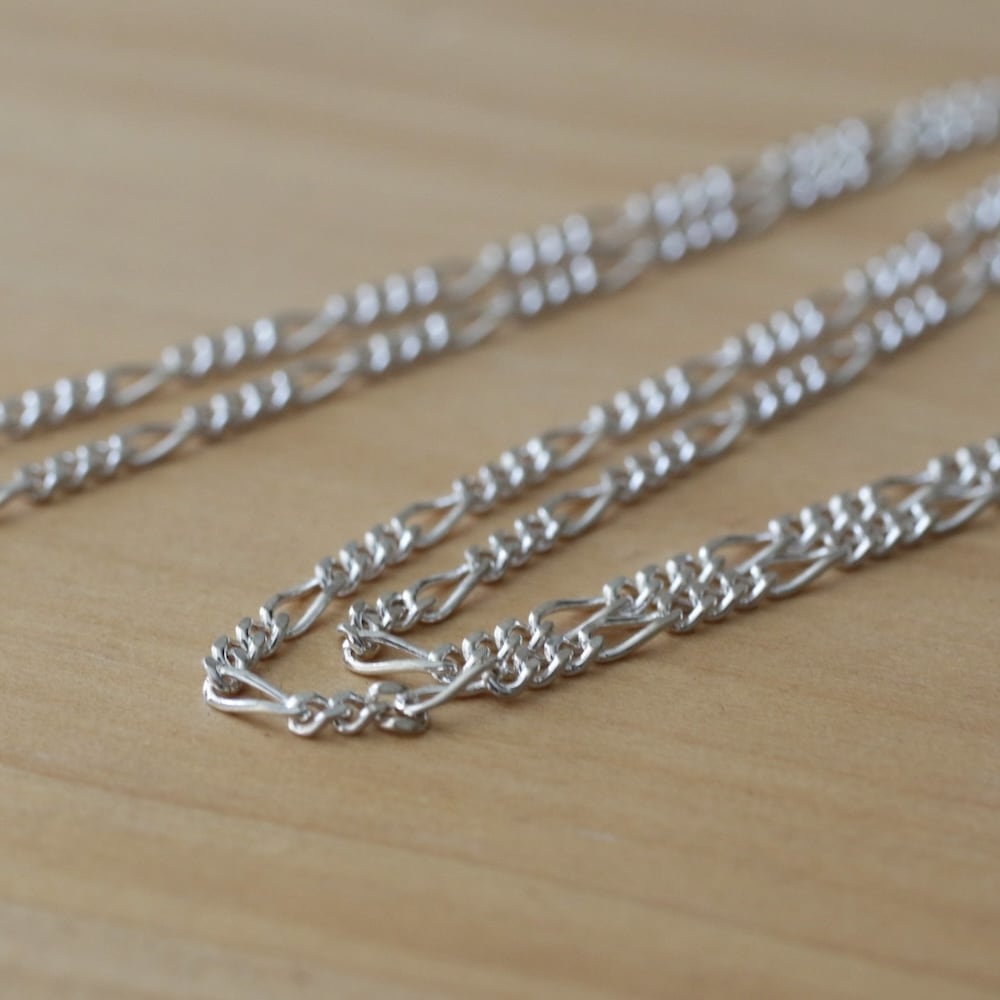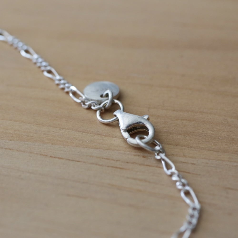 繊細なフィガロシルバーチェーンで作ったミニマルなネックレス雨。スタイル、性別、TPO問わずつけていただけます。