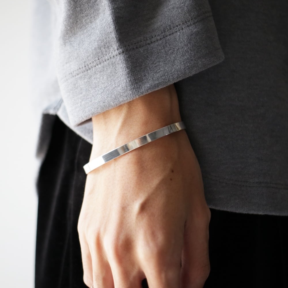 シルバーバングルと言うと多少の装飾があるものが多いのですが、こちらのアイテムはそう言ったものを省き、シルバーの素材と質感を最大限に活かすことで、逆に個性を発揮したアイテムに仕上がっています。